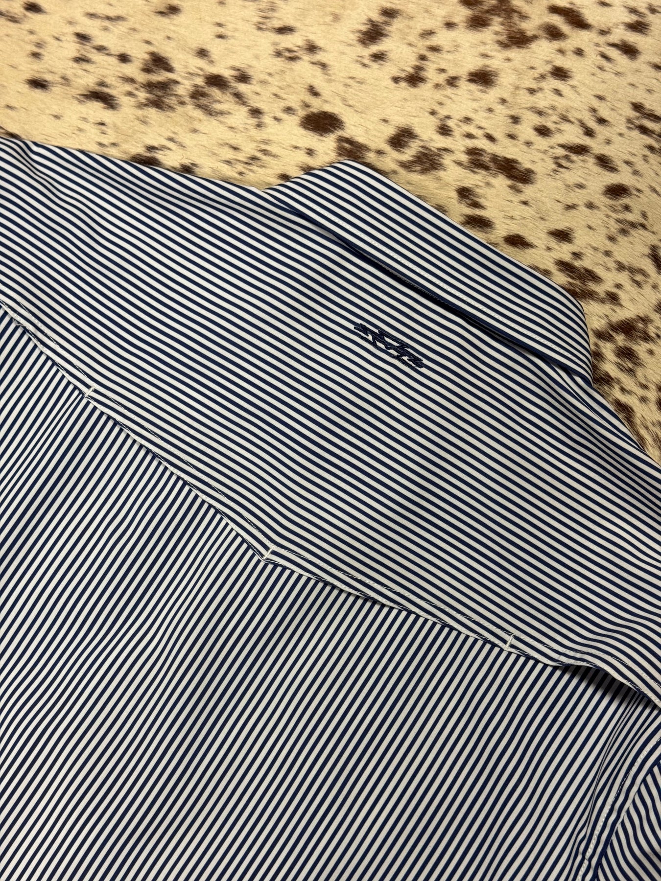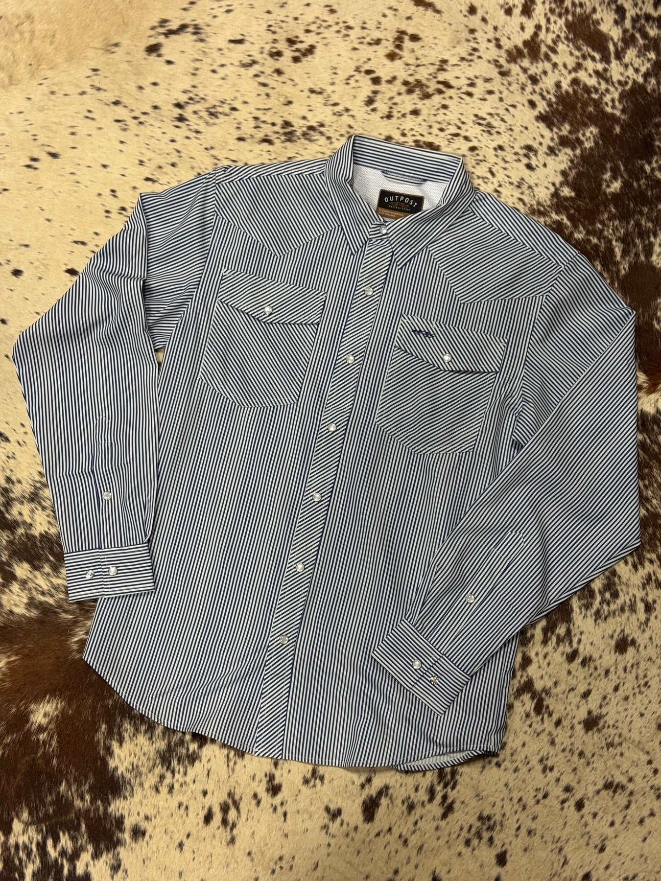 Outpost Performance Navy/White Pinstripe Pearl Snap LS Shirt