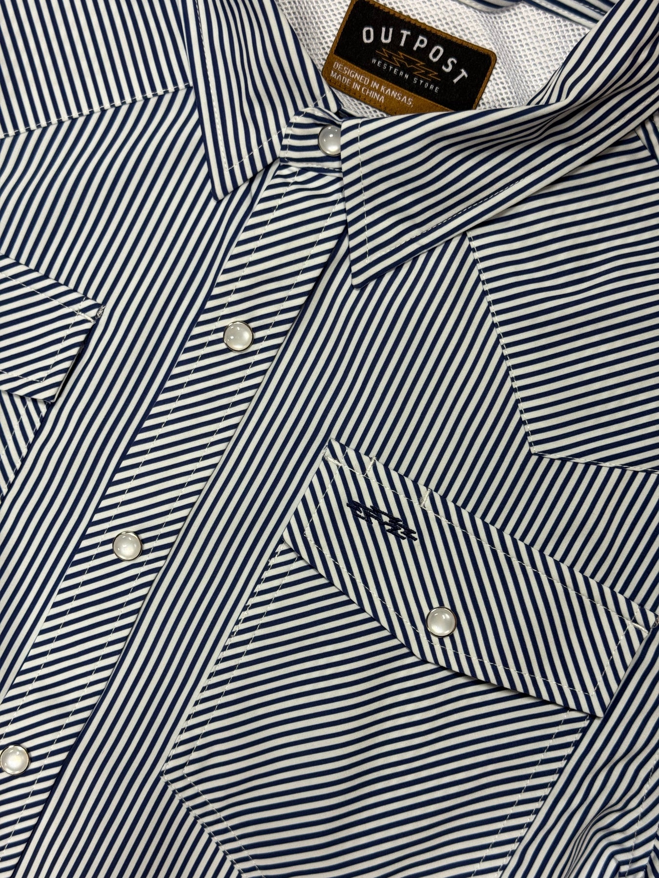 Outpost Performance Navy Pinstripe Pearl Snap LS Shirt