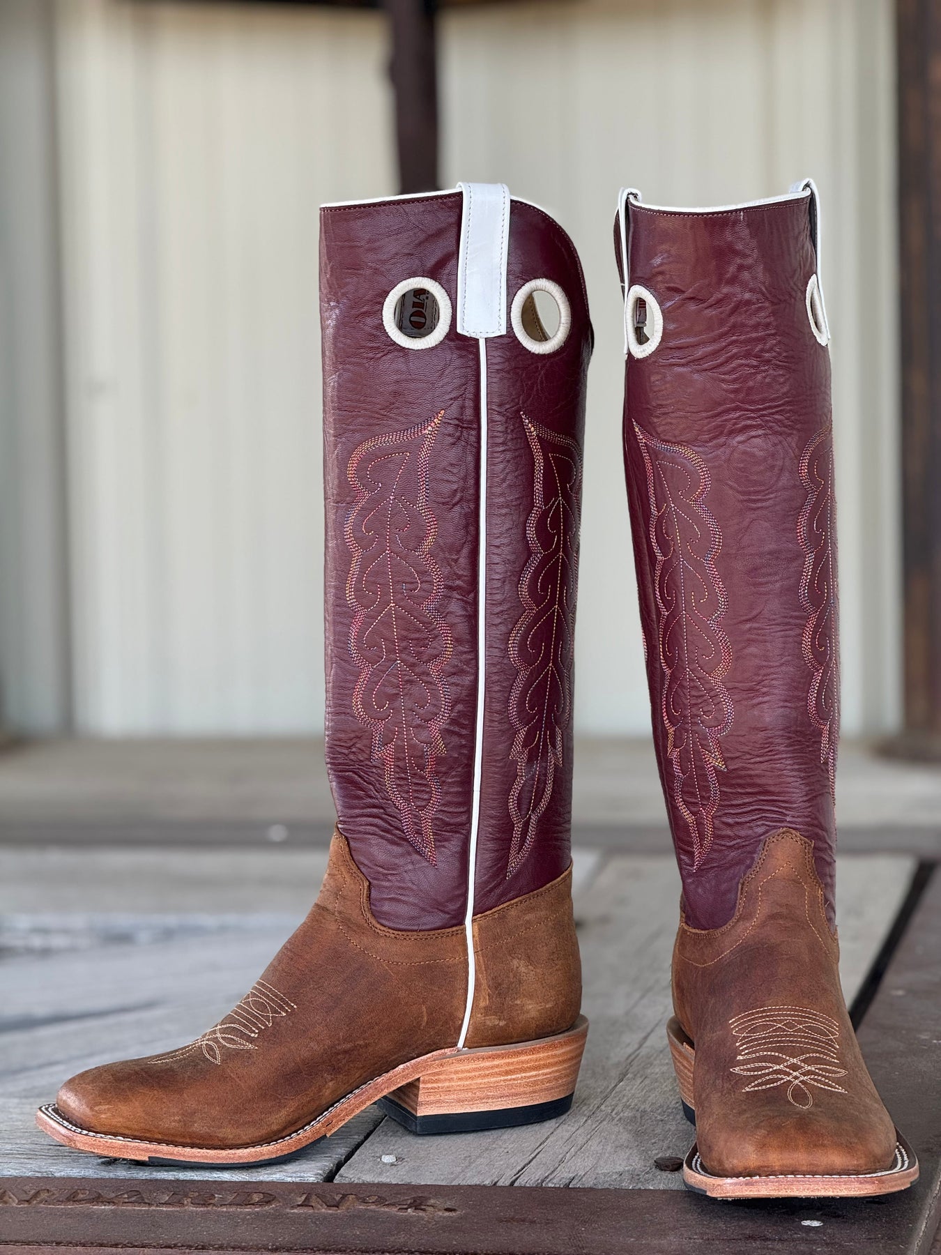 Olathe Boot Co. | Natural Brahma Bison/Sangria Tall Top Boot