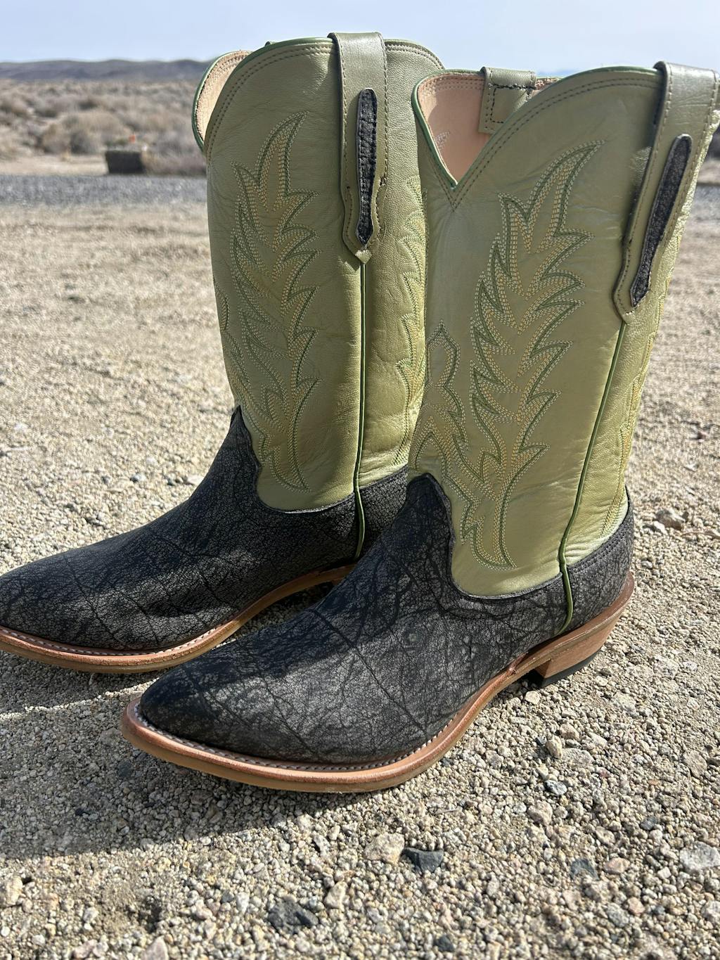 Fenoglio Boot Co. | Grey Cape Buffalo w/Sage Green Boot